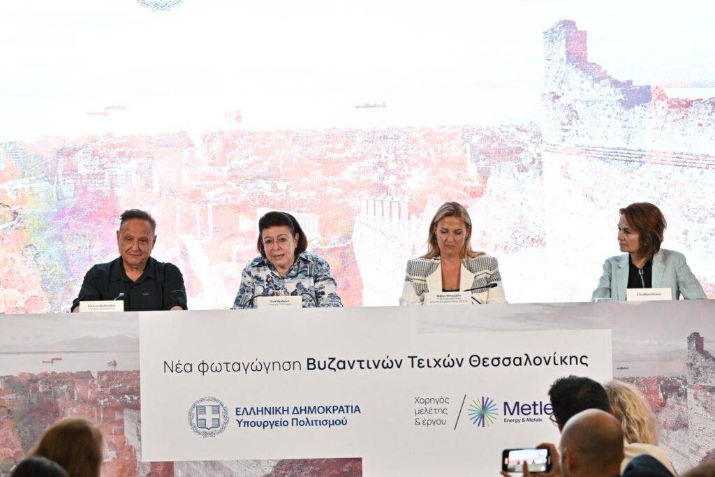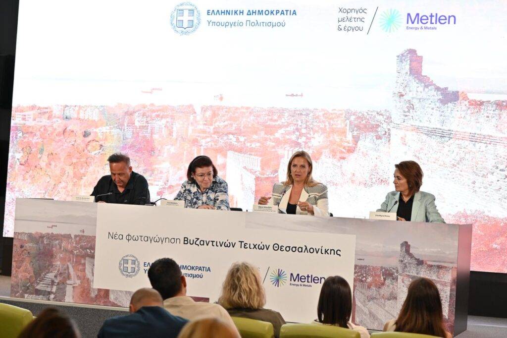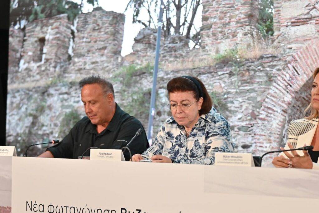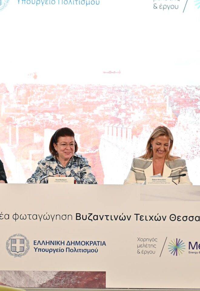 Συνέντευξη Tύπου, για τον φωτισμό των Βυζαντινών Τειχών της πόλης, έδωσε σήμερα στο Αρχαιολογικό Μουσείο Θεσσαλονίκης, η Υπουργός Πολιτισμού Λίνα Μενδώνη με την εκπρόσωπο της METLEN Βίβιαν Μπουζάλη Chief Corporate Affairs and Communication Officer και την σχεδιάστρια του έργου Ελευθερία Ντεκώ, παρουσία του Δημάρχου Στέλιου Αγγελούδη.