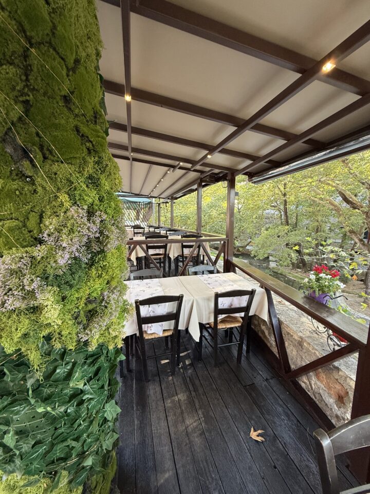 Η εμπειρία συμπληρώνεται από τη μοναδική τοποθεσία με θέα τις πέτρινες γέφυρες, τον νερόμυλο και το ιστορικό ρολόι της πόλης. Το περιβάλλον αποπνέει οικειότητα και φροντίδα, ενώ το προσωπικό υποδέχεται με χαμόγελο και πραγματικό ενδιαφέρον.