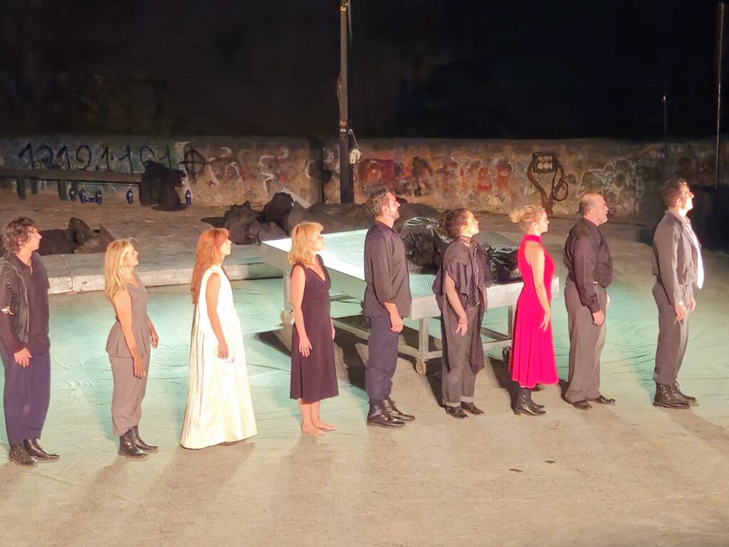 Συνολικά, η χθεσινή «Αντιγόνη» προβάλλει την κυκλική επανάληψη της ιστορικής τραγικότητας και την αναπόφευκτη καταστροφή που γεννάει η ύβρις της εξουσίας. Οχι μόνο για τον ίδιο τον ηγεμόνα αλλά και για το κοινωνικό σώμα που παραμένει συνένοχο στη σιωπή. Είναι μια παράσταση που μας υπενθυμίζει ότι το ανθρώπινο είναι, ως είναι-προς-θάνατον, καλείται να αναλάβει την ελευθερία και την ευθύνη του. Ετσι η «Αντιγόνη» αναδύεται όχι ως κλασικό κείμενο του παρελθόντος αλλά ως διαρκές συμβάν αλήθειας που σφραγίζει το παρόν μας.
