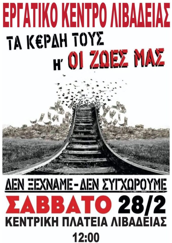 Συλλαλητήριο διοργανώνει το Εργατικό Κέντρο Λιβαδειάς το Σάββατο 28 Φεβρουαρίου 2026, στις 12:00 το μεσημέρι, στηνΔιαβάστε