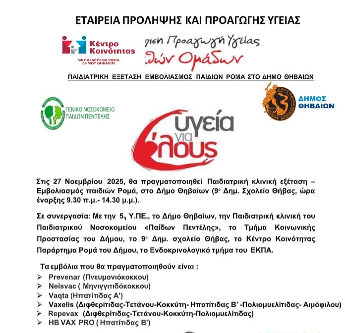 Μια ολοκληρωμένη παιδιατρική δράση για τα παιδιά της κοινότητας Ρομά θα πραγματοποιηθεί στις 27 Νοεμβρίου 2025Διαβάστε