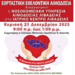 - Εορταστική εθελοντική αιμοδοσία αύριο στη ΛιβαδειάΕορταστική εθελοντική αιμοδοσία διοργανώνει η Νοσοκομειακή Υπηρεσία Αιμοδοσίας Λιβαδειάς την Κυριακή 21 Δεκεμβρίου 2025, στο Ιατρικό Κέντρο Λιβαδειάς. Η αιμοδοσίαΔιαβάστε